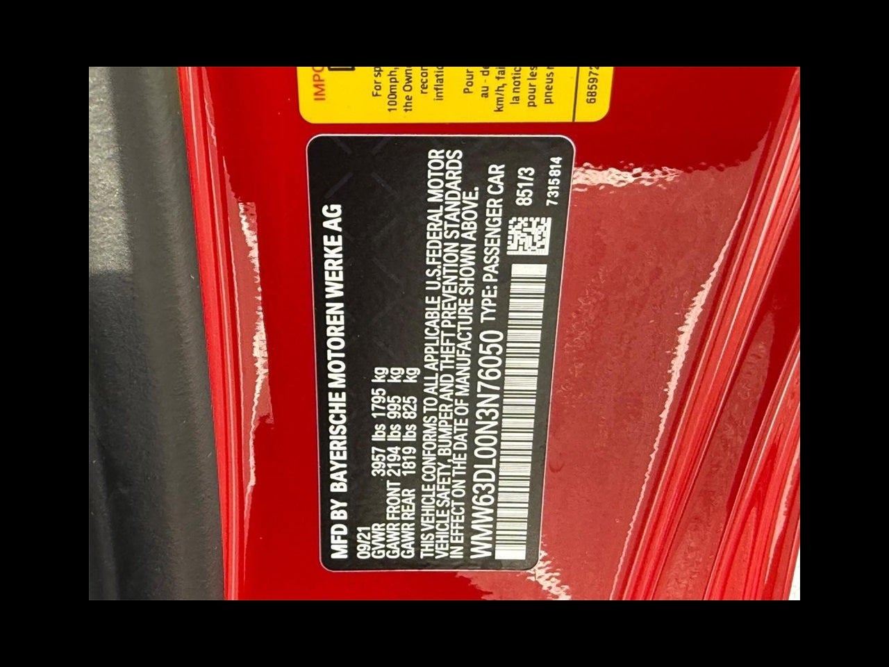 - Rear Tire Order Code: 927